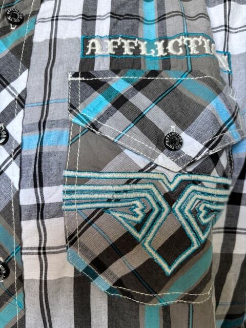 ・フロント左ポケット上に、Afflictionの文字が刺繍してある。