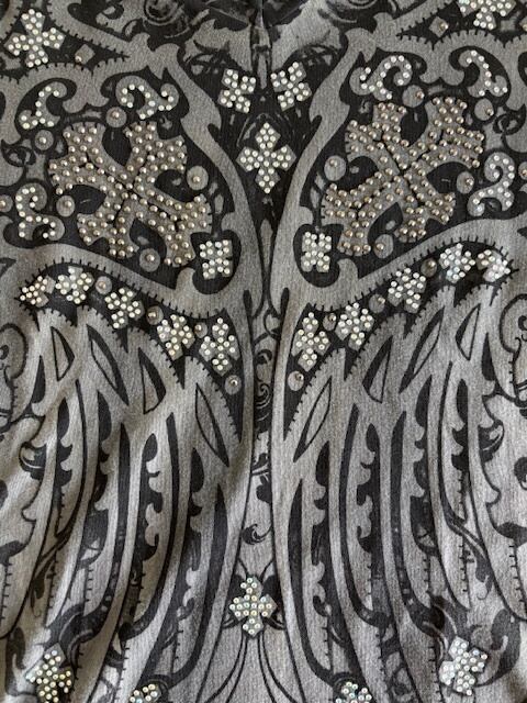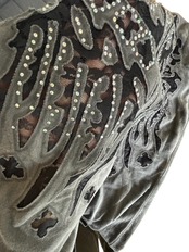 ・フロントもバックもクロスのデザインの上に、琥珀色のラインストーンが散りばめられている。