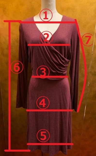 ⑦着丈(前) / Length :57 cm / 22.44 inch ※U-neckの真下から測っています。