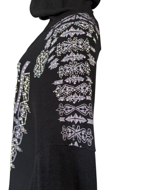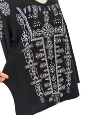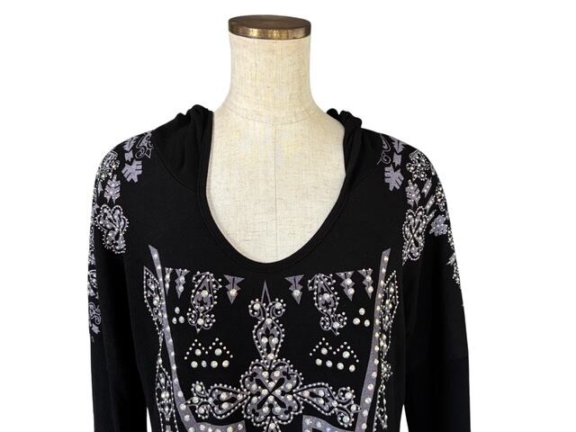・ラグランスリーブの袖肩付近に、デザインとラインストーンがあります。