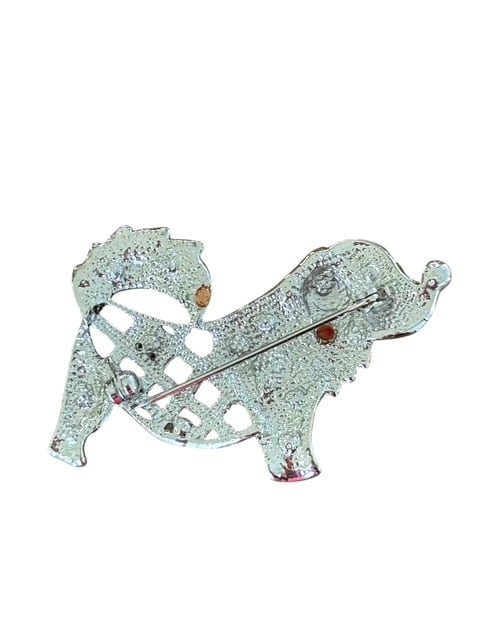 ・ピンクの様々な大きさのラインストーンが入った犬のブローチです。