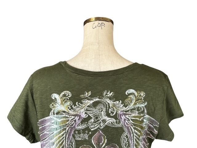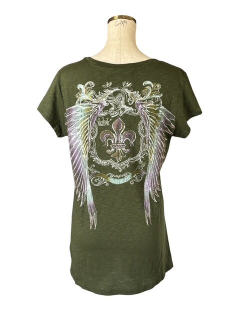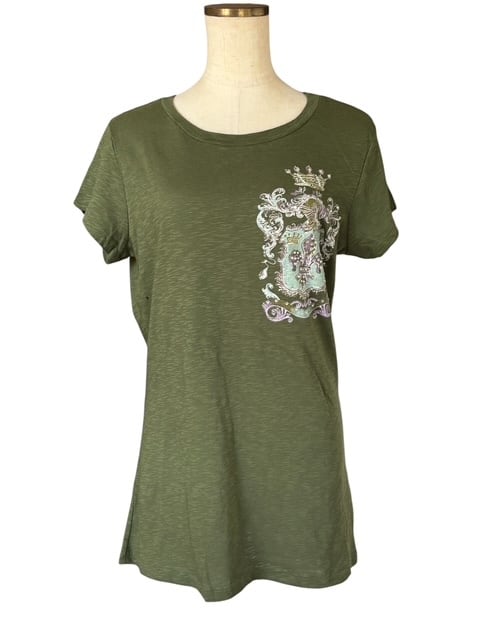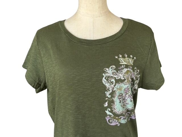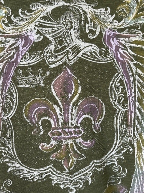 ・フロントのデザインは、左胸にツタのフレームに入った百合の紋章、フレームの上には王冠がある。