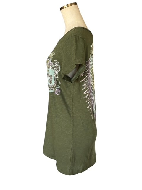 ・バックには大きなウィングが描かれています。その中央に百合の紋章がある。