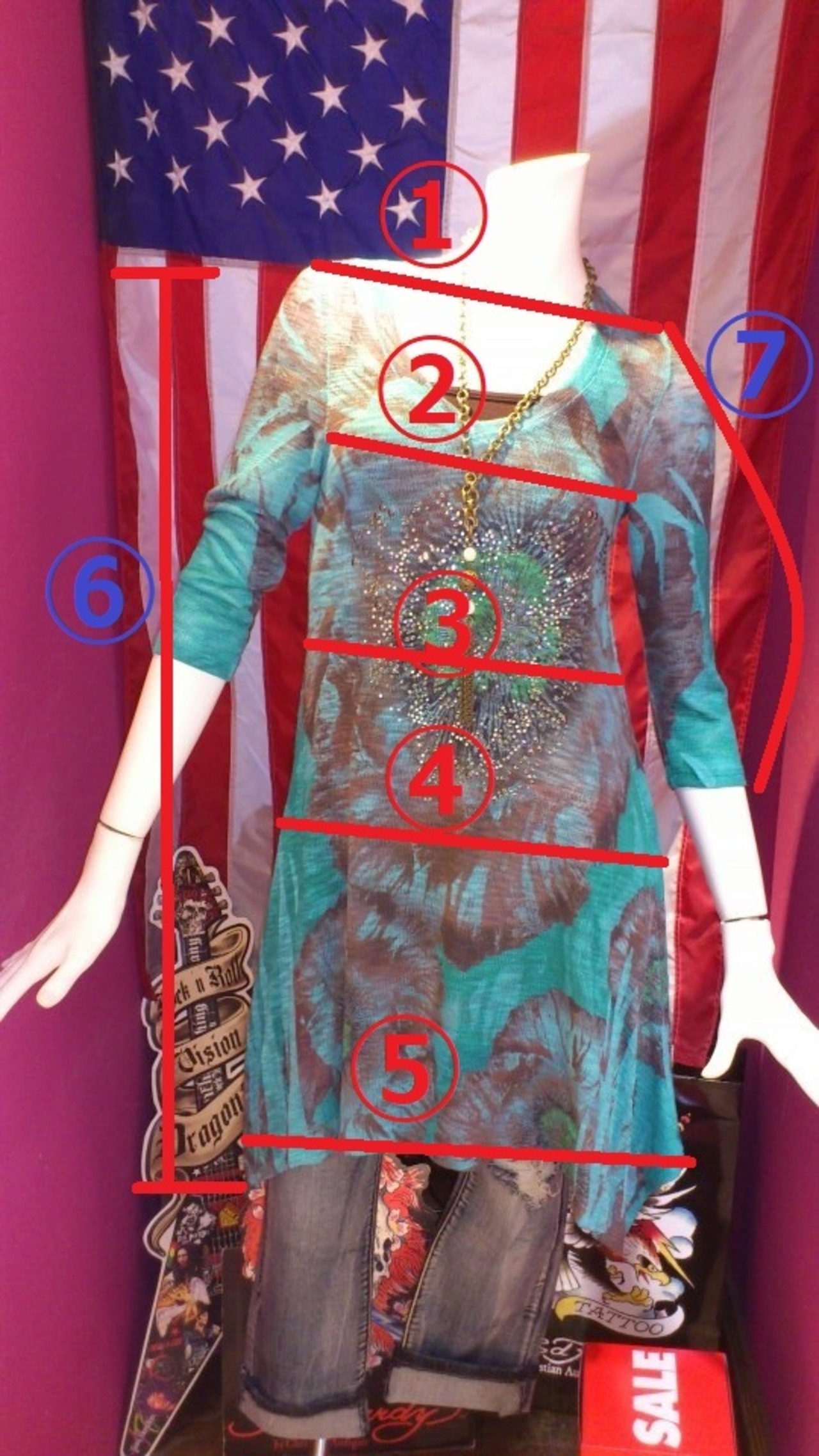 ⑦着丈 / Length : 72.5 cm / 28.54 inch
