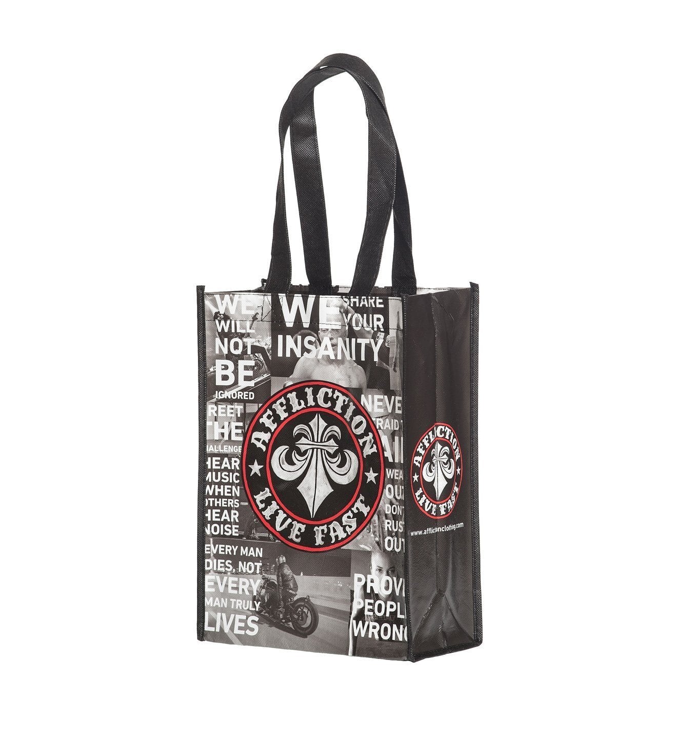 Live fast and pack your new Affliction gear in one of our own retail shop bags. This bag is perfect to give as a gift or use yourself. Perfect for groceries or gear.