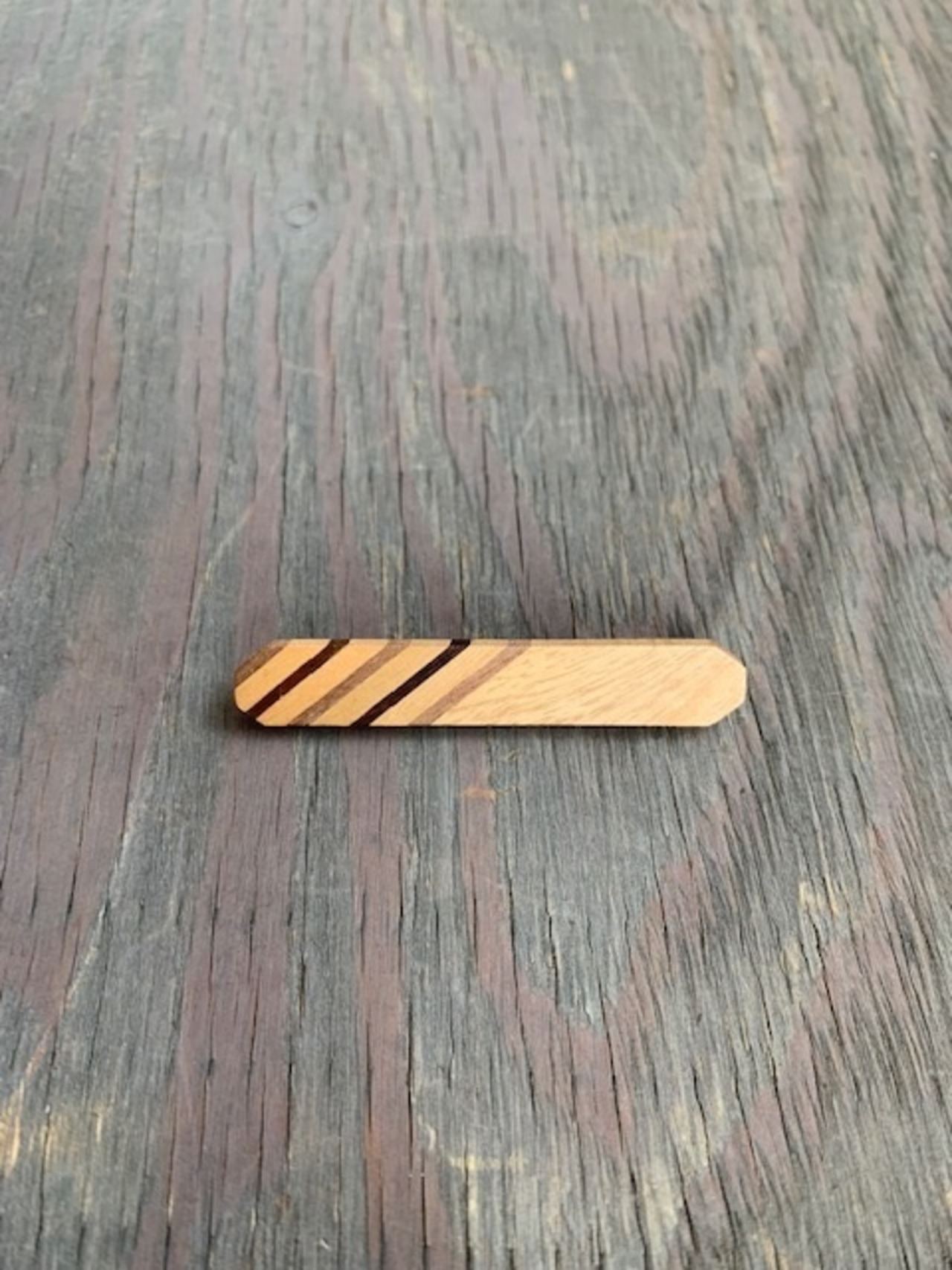 ・サーフボードかスケートボードをモチーフにした木のブローチです。