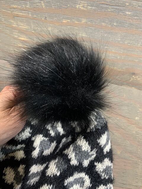 ★商品名(itme name):ニット帽USAインポート / ニット帽USAインポート / Pom Pom Leopard Beanie(Black)