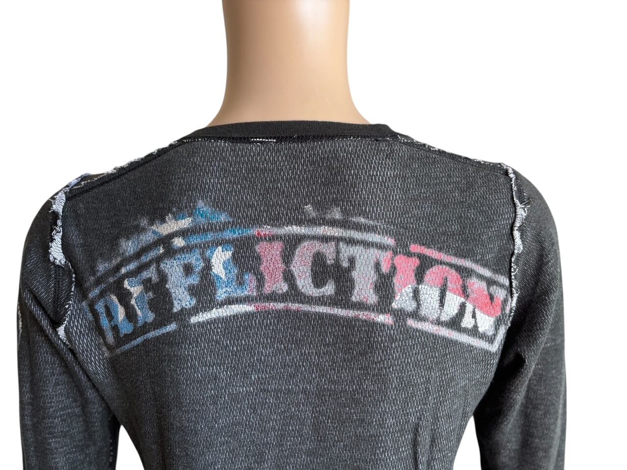 ・ダークグレー側は、フロント全面にアメリカンフラッグカラーのAfflictionのロゴ。左袖上部に、アメリカンフラッグカラーの小さなスカルが描かれています。