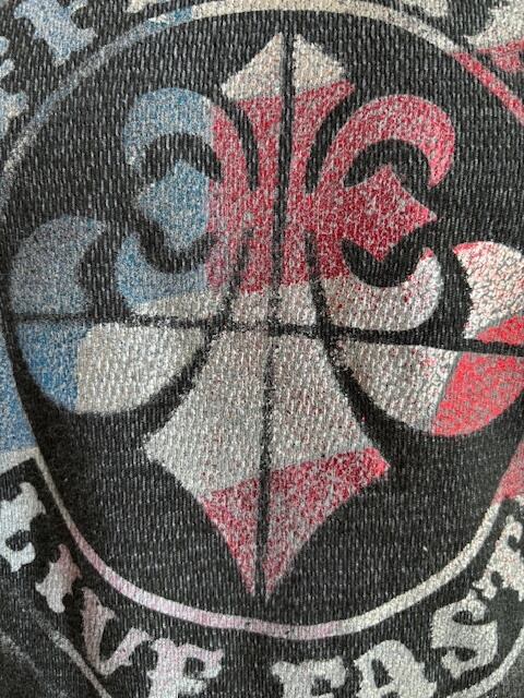 ・ライトグレー側は、つたベースにクロス(クロスの先端左右にスカル)、ウィング、Afflictionのロゴ、Live Fastの文字.....と満載のデザイン。バックは上部にAfflictionのロゴがひかえめに入っています。
