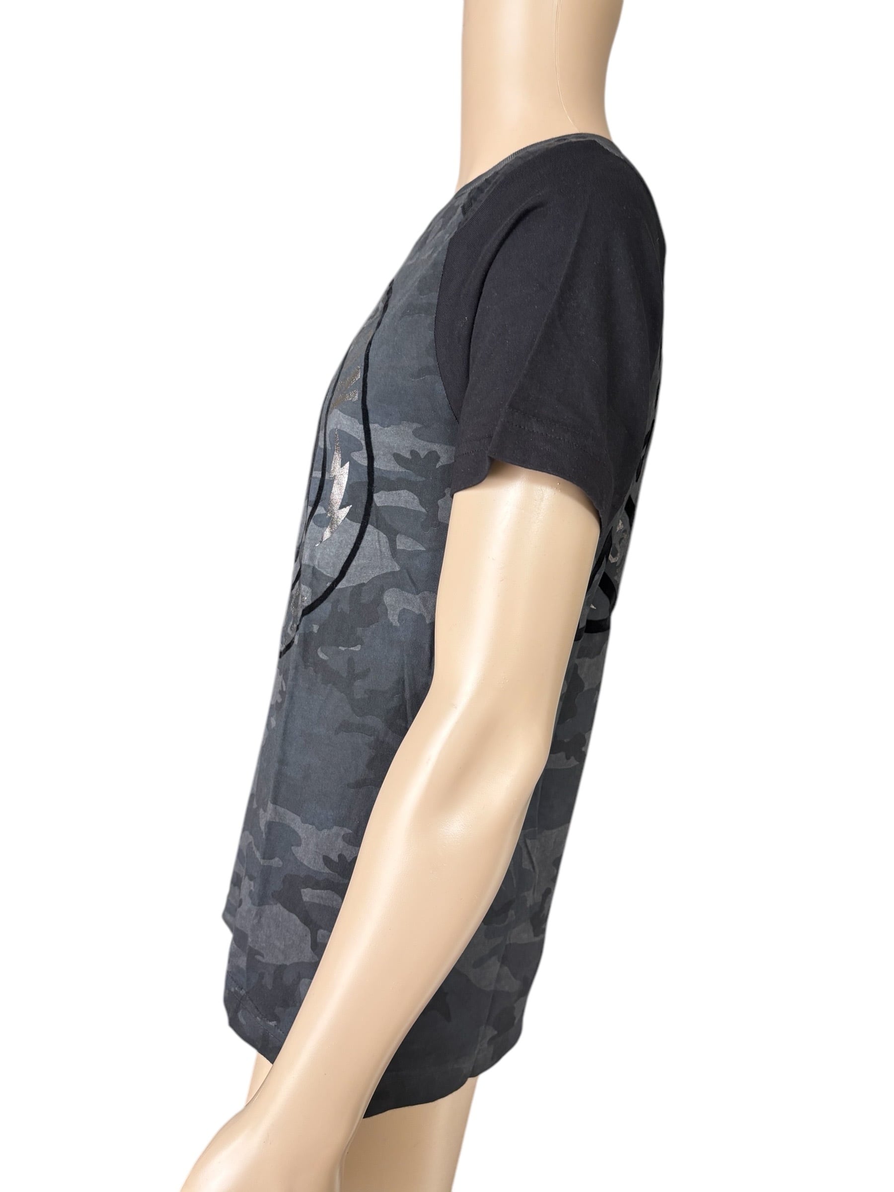 ・袖はブラックカラーで、右袖にはフロントと同じデザインのスカルが描かれています。